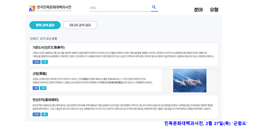 [수완뉴스=김동주 기자] 한국학중앙연구원(이하 ‘연구원’)이 운영하는 한국민족문화대백과사전(이하 ‘민백사전’)에서 군함도와 사도광산이 빠져 있다. 소위 한국학에 대한 최고의 지식 창고이자 한국 문화를 집대성했다고 자찬하던 연구원의 모습과 반대되는 모습이었으나, 최근 연구원에 따르면, 해당 의원의 요구사항에 관해 정정했으며, 2025년 하반기에 민백사전에 반영하여 제공할 계획이라고 밝혔다.